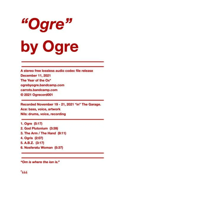 Three knuckleheads. Two basses. One drum kit. Zero guitars. Always. Loud and odd, Ogre is fresh off their third album in two years, playing to packed-out venues across Portland and beyond. Their latest release "ogre 3" is a compact, shrill experience that calls upon Shellac, Osees, and Lightning Bolt influences. They must be seen to be believed.